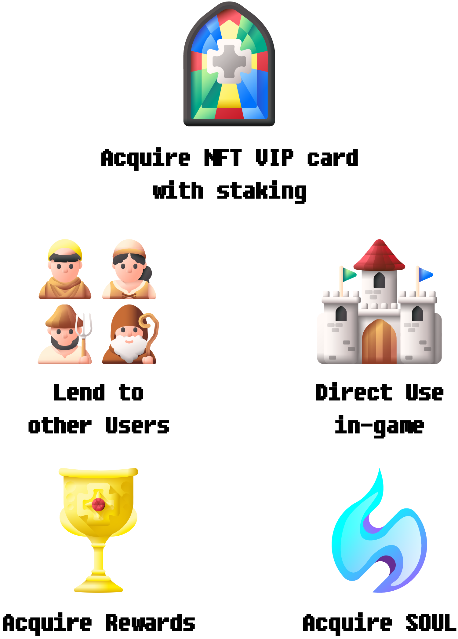 The VIP card system operates on a seasonal basis. Users can acquire NFT VIP cards by staking SOUL tokens. VIP cards allow users to gain in-game buffs and increase mining perks. VIP cards can be lent to other users, which can earn rewards.