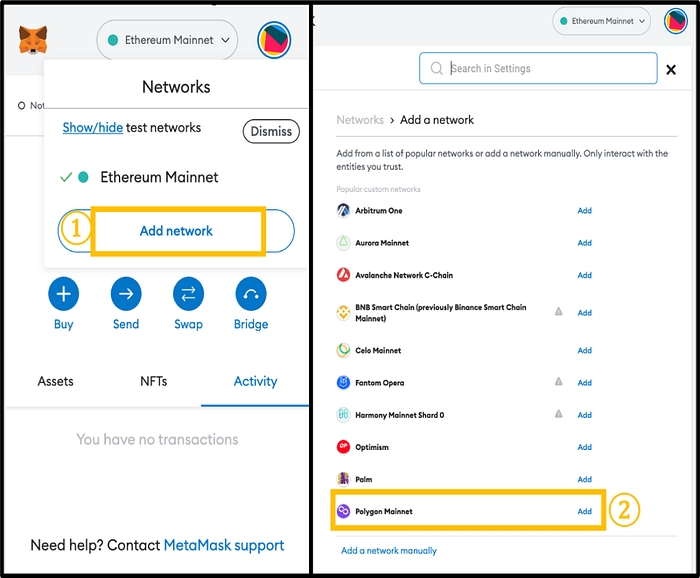 2. Polygon network add in metamask